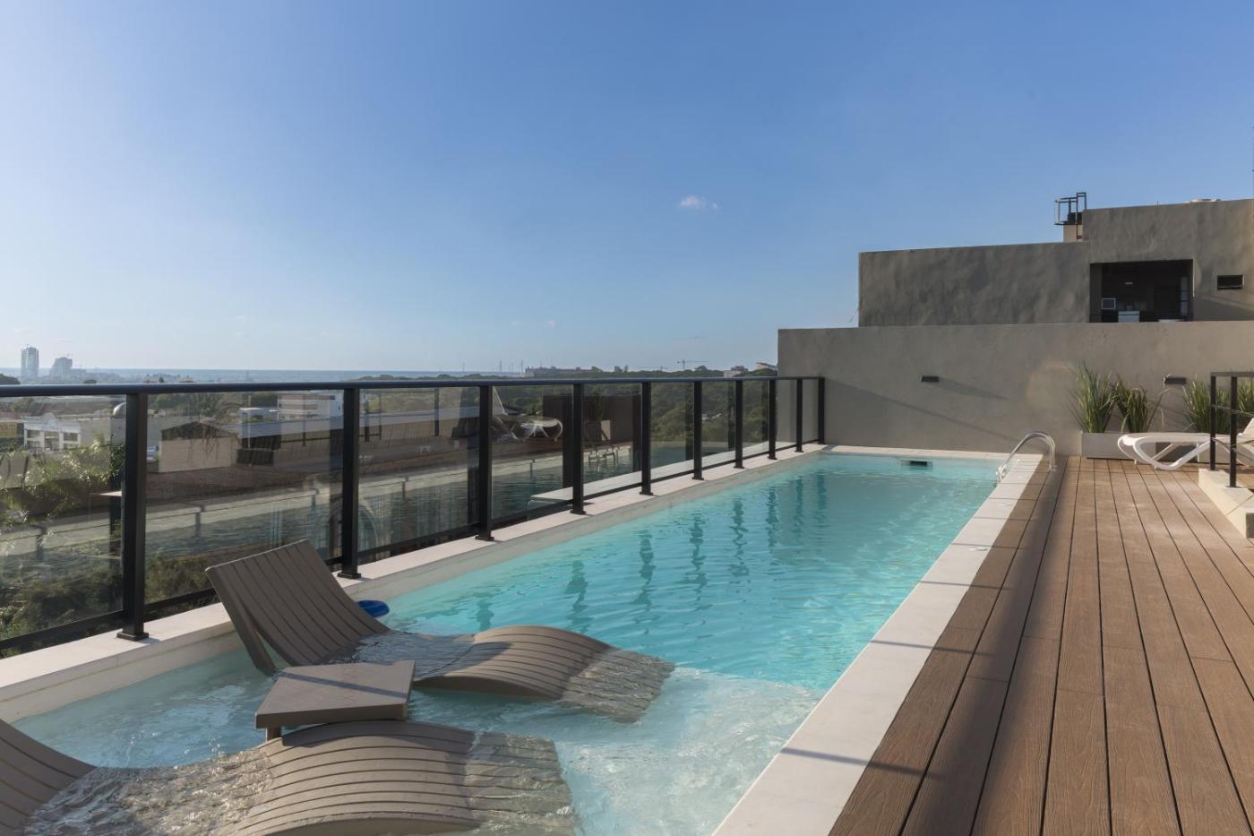 One-Bedroom Apartment. This apartment features a private pool. Boasting 1 bedroom and 1 bathroom with a bath or a shower, this apartment has a well-fitted kitchen and a terrace. The apartments kitchen is available for cooking and storing food. Featuring a balcony, this apartment also features air conditioning, a wardrobe and a flat-screen TV. The unit offers 1 bed. ;