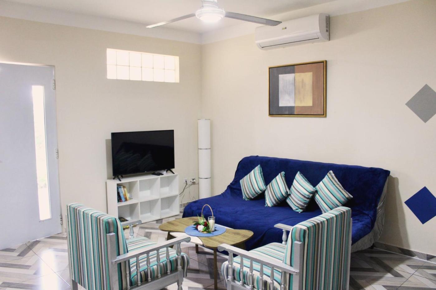 The spacious holiday home features 2 bedrooms, 1 bathroom, bed linen, towels, a flat-screen TV with streaming services, a dining area, a fully equipped kitchen, and a terrace with garden views. Guests can enjoy a meal on an outdoor dining area while overlooking thecourtyard views. For added privacy, the accommodation has a private entrance and is protected by full-day security.